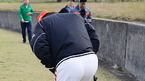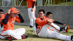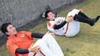 [OSEN=오키나와, 민경훈 기자] 29일 일본 오키나와 고친다 구장에서 진행된 한화 이글스 2013 오키나와 전지훈련에서 한화 이여상이 훈련을 할때 김성한 수석코치가 이여상의 배를 밟아보고 있다. 이번 오키나와 전지훈련에는 김