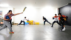 [OSEN=오키나와, 민경훈 기자] 일본 오키나와에서 전지훈련을 하는 한화 이글스의 투수진들이 30일 훈련 휴일 저녁에 선수단 숙소인 서전비치호텔&리조트 앞에서 우천 중 야간 훈련을 가졌다. 한화투수들이 비를 피해 창고에