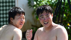 [OSEN=괌 ,백승철 기자] 30일 오후(현지시간) 괌에 위치한 삼성 1차 전지훈련장에서 배영수(왼쪽)가 수영 훈련 중 미소를 짓고 있다. 지난 20일 괌에 1차 전지훈련 캠프를 차린 삼성은 오는 2월5일까지 훈련한 뒤 일본 오키나와로 이