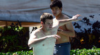 [OSEN=괌 ,백승철 기자] 30일 오후(현지시간) 괌에 위치한 삼성 1차 전지훈련장에서 밴덴헐크가 수영장 레인을 왕복한 후 동료들과 하이파이브를 하고 있다. 지난 20일 괌에 1차 전지훈련 캠프를 차린 삼성은 오는 2월5일까지 훈련
