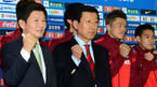 [OSEN=인천공항, 지형준 기자] 한국축구대표팀이 크로아티아와의 평가전을 위해 30일 오전 인천공항을 통해 영국 런던으로 출국했다. 정몽규 회장이 최강희 감독을 비롯한 대표팀과 파이팅을 외치고 있다. 이날 대표팀은 최강희