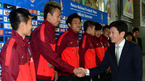 [OSEN=인천공항, 지형준 기자] 한국축구대표팀이 크로아티아와의 평가전을 위해 30일 오전 인천공항을 통해 영국 런던으로 출국했다. 정몽규 회장이 대표팀 선수들과 악수를 하며 격려하고 있다. 이날 대표팀은 최강희 감독을