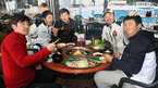 [OSEN=미야자키, 민경훈 기자] 31일 오후 2013 미야자키 전지훈련 중인 두산 베어스 선수들 및 코칭스탭들이 선수단 숙소 라구제 히토츠바에서 풀 사이드 바비큐파티를 가졌다. 황병일 수석코치가 홍성흔 고영민 손시헌과 함께 포