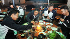 [OSEN=미야자키, 민경훈 기자] 31일 오후 2013 미야자키 전지훈련 중인 두산 베어스 선수들 및 코칭스탭들이 선수단 숙소 라구제 히토츠바에서 풀 사이드 바비큐파티를 가졌다. 오재일이 한입에 고기쌈을 먹고 있다. 이번 두산 미