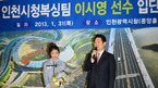 [OSEN=인천, 곽영래 기자] 배우겸 복서 이시영이 31일 오전 인천 인천시청에서 '인천시청 복싱부 선수 입단식'을 가졌다. 송영길 인천시장이 입단 환영사를 전하고 있다. 이시영은 지난해 7월 제33회 회장배 전국 아마추어 복싱대