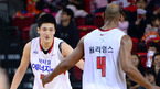 [OSEN=인천, 곽영래 기자] 1일 오후 인천 삼산 월드체육관에서 '2012-2013시즌 KB국민카드 프로농구' 인천 전자랜드와 고양 오리온스의 경기, 4쿼터 득점을 올린 오리온스 최진수가 윌리엄스와 하이파이브를 하고 있다. 전자랜드는