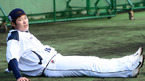 [OSEN=미야자키, 민경훈 기자] 2일 일본 미야자키 기요다케 구장에서 진행된 두산 베어스 2013 미야자키 전지훈련에서 이원석이 수비훈련을 마치고 고통스러워 하고 있다. 이번 두산 미야자키 전지훈련에는 김진욱 감독을 비롯한