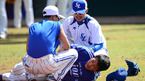 [OSEN=괌 ,백승철 기자] 2일 오전(현지시간) 괌에 위치한 레오팔레스 삼성 1차 전지훈련장에서 김희걸이 훈련 중 야구공에 급소를 맞고 쓰러져 있다. 지난 20일 괌에 1차 전지훈련 캠프를 차린 삼성은 오는 2월5일까지 훈련한 뒤 일