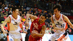 [OSEN=고양,지형준 기자] 3일 오후 고양실내체육관에서 2012-2013시즌 KB국민카드 프로농구 고양 오리온스와 인천 전자랜드의 경기가 열렸다. 2쿼터 오리온스 전태풍이 전자랜드 정영삼, 주태수의 수비를 피해 골밑돌파를 시도하고