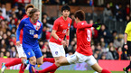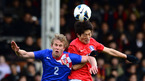 [OSEN=런던(영국), 손용호 기자] 최강희 감독이 이끄는 한국 축구대표팀이 6일 오후 영국 런던 크레이븐 코티지에서 '동유럽의 강호' 크로아티아와 평가전을 가졌다. 전반 한국 최재수, 손흥민이 크로아티아 만주키치에 헤딩 선제