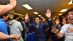 [OSEN=서프라이즈(미국 애리조나),곽영래기자] 넥센 히어로즈가 10일 오후(한국시간) 미국 애리조나 서프라이즈 텍사스 레인저스 볼파크 라커룸에서 윷놀이 마당을 펼쳤다.투수조팀에세 승리한 넥센 염경엽 감독이 환호하고 있다