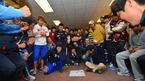 [OSEN=서프라이즈(미국 애리조나),곽영래기자] 넥센 히어로즈가 10일 오후(한국시간) 미국 애리조나 서프라이즈 텍사스 레인저스 볼파크 라커룸에서 윷놀이 마당을 펼쳤다.투수조팀에세 승리한 넥센 염경엽 감독이 코칭스태프들