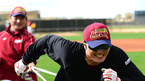 [OSEN=서프라이즈(미국 애리조나),곽영래기자] 넥센 히어로즈가 10일(한국시간) 미국 애리조나주 서프라이즈 텍사스 레인저스 볼파크에서 스프링캠프 훈련을 가졌다.넥센 정수성이 귀루 훈련을 하고 있다염경엽 감독을 포함하여