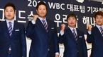 [OSEN=민경훈 기자] 11일 서울 청담동 리베라호텔에서 2013 월드베이스볼클래식(WBC 2013) 대한민국 대표팀이 출국을 하루 앞두고 기자회견을 가졌다. 윤석민 이대호 류중일 감독, 강민호가 포토타임을 갖고 있다. 이 자리에는 류중