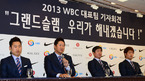 [OSEN=민경훈 기자] 11일 서울 청담동 리베라호텔에서 2013 월드베이스볼클래식(WBC 2013) 대한민국 대표팀이 출국을 하루 앞두고 기자회견을 가졌다. 윤석민 이대호 류중일 감독, 강민호가 포토타임을 갖고 있다. 이 자리에는 류중