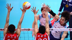 [OSEN=인천, 곽영래 기자] 11일 오후 인천 도원체육관에서 열린 '2012-2013 NH농협 V-리그' 남자부 대한항공과 LIG손해보험의 경기, 2세트 LIG 까메호가 대한항공 마틴을 앞에두고 스파이크를 때리고 있다. 김종민 감독대행 체제로 탈바
