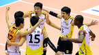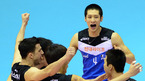 [OSEN=아산 ,백승철 기자] 12일 오후 충남 아산시 이순신체육관에서 열린 '2012-2013 NH농협 V-리그' 남자부 아산 러시앤캐시와 천안 현대캐피탈의 경기 2세트를 승리한 러시앤캐시 선수들이 기뻐하고 있다. 김호철 감독이 지휘하는