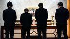 [OSEN 사진팀] 울랄라세션의 리더 임윤택이 11일 오후 8시 42분 서울 신촌 세브란스 병원에서 위암 투병 중 사망했다. 故 임윤택의 빈소에서 조문객들의 조문이 이어지고 있는 가운데 울랄라세션이 영정사진에 조문을 하고 있다.