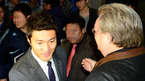 [OSEN=인천국제공항 ,백승철 기자] 13일 오후 국제올림픽위원회(IOC) 징계위원회에 출석 후 귀국한 박종우가 인천국제공항 입국장에서 대한축구협회 국제변호사와 인사를 나누고 있다. '독도 세레머니'로 인해 2012 런던올림픽 남