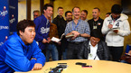 [OSEN=글렌데일(미국 애리조나), 곽영래 기자] 류현진이 13일(이하 한국시간) 미국 애리조나주 글렌데일의 캐멀백 랜치 스타디움에서 열린 다저스 스프링캠프에 합류해 팀 훈련을 가졌다.류현진의 취재진의 질문을 듣고 있다지난