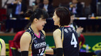 [OSEN=수원 ,백승철 기자] 14일 오후 수원 실내체육관에서 열린 '2012-2013 NH농협 V-리그' 여자부 현대건설과 흥국생명의 경기 종료 후 황연주와 정미선이 승리를 기뻐하고 있다. 플레이오프(PO) 진출을 위해 막판 혼신을 다하고 있는