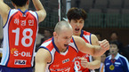 [OSEN=수원 ,백승철 기자] 14일 오후 수원 실내체육관에서 열린 '2012-2013 NH농협 V-리그' 남자부 KEPCO와 대한항공의 경기 2세트 대한항공이 득점 후 마틴과 김학민이 환호하고 있다. 이재구 감독대행이 이끄는 KEPCO는 지난 10일 치른