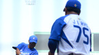 [OSEN=도류(대만), 지형준 기자] 2013 월드베이스볼클래식(WBC 2013) 대한민국 대표팀이 14일 오전 대만 자이현 도류구장에서 훈련을 가졌다. 서재응이 더그아웃에서 이승엽의 훈련을 지켜보며 엄지손가락을 치켜들고 있다. 한국은