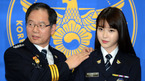 [OSEN=이대선 기자]15일 오후 서울 서대문 경찰청에서 열린 '감사패 수여 및 명예경찰 위촉식'에서 가수 아이유가 김기용 경찰청장으로부터 명예 계급장을 전달받고 있다. 이날 위촉식에서 가수 아이유와 개그팀 용감한 녀석들(