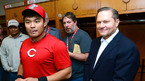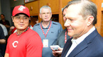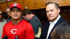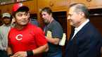 [OSEN=굿이어(미국 애리조나), 곽영래기자] 추추트레인 추신수(31, 신시내티 레즈)가 15일(현지시간) 미국 애리조나 굿이어 볼파크에서 스프링캠프 훈련을 가졌다.신시내티 더스티 베이커 감독이 허구연 해설위원과 악수를 나누고