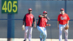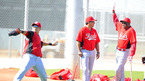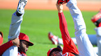 [OSEN=굿이어(미국 애리조나), 곽영래기자] 추추트레인 추신수(31, 신시내티 레즈)가 15일(현지시간) 미국 애리조나 굿이어 볼파크에서 스프링캠프 훈련을 가졌다.신시내티 자니 쿠에토와 조이 보토가 스트레칭을 하고 있다연봉 조