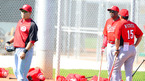 [OSEN=굿이어(미국 애리조나), 곽영래기자] 추추트레인 추신수(31, 신시내티 레즈)가 15일(현지시간) 미국 애리조나 굿이어 볼파크에서 스프링캠프 훈련을 가졌다.신시내티 더스티 베이커 감독이 추신수의 캐치볼을 지켜보고 있다