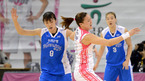 [OSEN=부천실내체,이대선 기자] 17일 오후 부천실내체육관에서 열린 'KDB금융그룹 2012-2013 여자프로농구' 하나외환과 우리은행의 경기, 1쿼터 하나외환 김정은이 우리은행 박혜진에게 파울을 당하고 있다. 우리은행 한새는 지난 15