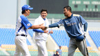 [OSEN=도류(대만), 지형준 기자] 2013 월드베이스볼클래식(WBC 2013) 대한민국 대표팀이 19일 오전 대만 자이현 도류구장에서 훈련을 가졌다. NC와의 연습경기에 앞서 김경문 감독과 대표팀 류중일 감독이 NC 훈련을 지켜보며 이야기