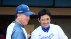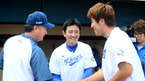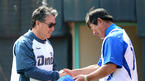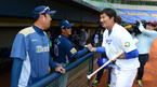 [OSEN=도류(대만), 지형준 기자] 2013 월드베이스볼클래식(WBC 2013) 대한민국 대표팀이 19일 오전 대만 자이현 도류구장에서 훈련을 가졌다. NC와의 연습경기에 앞서 김경문 감독과 대표팀 서재응, 오승환이 더그아웃에서 인사를 나
