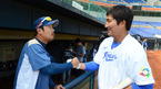 [OSEN=도류(대만), 지형준 기자] 2013 월드베이스볼클래식(WBC 2013) 대한민국 대표팀이 19일 오전 대만 자이현 도류구장에서 훈련을 가졌다. NC와의 연습경기에 앞서 김경문 감독과 대표팀 류중일 감독이 인사를 나누고 있다. 한국은