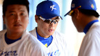 [OSEN=도류(대만), 지형준 기자] 2013 월드베이스볼클래식(WBC 2013) 대한민국 대표팀이 23일 대만 자이현 도류구장에서 NC 다이노스와 연습경기를 가졌다. 경기에 앞서 장원삼이 훈련을 마치고 손가락에 테이핑하는 정근우를 걱정스