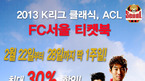 [OSEN=김희선 기자] "K리그 클래식과 ACL경기를 친구와 함께! 가족과 함께!". FC서울이 2013시즌을 앞두고, 인터파크(sports.interpark.com)를 통해 특별 티켓북을 최대 29% 할인가로 판매한다. 서울은 K리그 클래식 2연패와 ACL 우승을 기원
