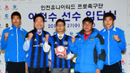 [OSEN=인천, 민경훈 기자] 27일 오후 인천 남동구 인천광역시청 로비에서 인천유나이티드 프로축구단 이천수 선수 입단식이 열렸다. 설기현 송영길 인천시장 이천수 김봉길 감독 김남일이 포토타임을 갖고 있다. 말 많고, 탈 많았