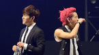 [OSEN=정송이 기자] 1일 오후 서울 올림픽공원 체조경기장에서 열린 '2013 인피니트 무한대집회'에서 인피니트 멤버 호야와 동우가 미소짓고 있다. '2013 인피니트 무한대집회'는 이름처럼 '집회'라는 컨셉을 내세워 팬들과 인피니