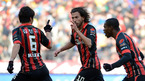 [OSEN=서울월드컵경기장,이대선 기자] 2일 서울 성산동 서울월드컵경기장에서 열린 '2013 K리그 클래식' 개막전 FC 서울과 포항 스틸러스의 경기, 전반전 선제골을 성공시킨 서울 데얀이 동료들과 환호하고 있다. '디펜딩 챔피언' F