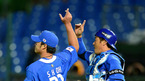 [OSEN=타이중(대만), 지형준 기자] 4일 오후 대만 타이중 인터컨티넨탈구장에서 한국과 호주의 월드베이스볼클래식(WBC) B조 2차전 경기가 벌어졌다. 호주에 6-0으로 승리한 한국의 오승환과 진갑용이 하이파이브를 나누고 있다. 이