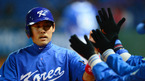[OSEN=타이중(대만), 지형준 기자] 4일 오후 대만 타이중 인터컨티넨탈구장에서 한국과 호주의 월드베이스볼클래식(WBC) B조 2차전 경기가 벌어졌다. 2회초 2사 2루 이승엽의 2루타때 홈을 밟은 이용규가 동료들의 환영을 받고 있다