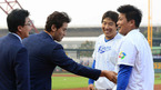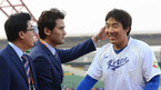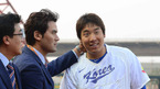 [OSEN=타이중(대만), 지형준 기자] 5일 오후 대만 타이중 인터컨티넨탈구장에서 2013 WBC 1라운드 B조 한국과 대만의 경기, 경기에 앞서 박찬호 해설위원이 김현수를 격려하고 있다. 한국과 대만의 경기에 앞서 벌어진 네덜란드와