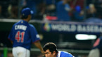 [OSEN=타이중(대만), 지형준 기자] 5일 오후 대만 타이중 인터컨티넨탈구장에서 2013 WBC 1라운드 B조 한국과 대만의 경기, 5회말 2사 1루 이대호의 안타때 1루 주자 정근우가 홈에서 태그아웃된 후 아쉬워하고 있다. 한국과 대만의