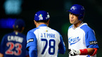 [OSEN=타이중(대만), 지형준 기자] 5일 오후 대만 타이중 인터컨티넨탈구장에서 2013 WBC 1라운드 B조 한국과 대만의 경기, 4회말 2사 1루 전준우가 안타를 날린후 박정태 코치와 하이파이브를 하고 있다 한국과 대만의 경기에 앞서