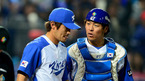 [OSEN=타이중(대만), 지형준 기자] 5일 오후 대만 타이중 인터컨티넨탈구장에서 2013 WBC 1라운드 B조 한국과 대만의 경기, 4회초 2사 2루 대만 양다이강에게 1타점 적시타를 허용한 노경은이 강민호 포수가 이야기를 나누고 있다 한