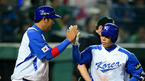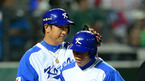 [OSEN=타이중(대만), 지형준 기자] 5일 오후 대만 타이중 인터컨티넨탈구장에서 2013 WBC 1라운드 B조 한국과 대만의 경기, 8회말 2사 1루 강정호가 역전 2점 홈런을 날리고 이대호의 축하를 받고 있다 한국과 대만의 경기에 앞서 벌