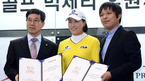 [OSEN=곽영래 기자] 7일 오전 경기도 일산 킨텍스 제2전시장에서 진행된 '박세리-카이도골프 후원계약 조인식'에서 박세리가 카이도 골프 (좌측) 채경용 회장과 배우균 대표와 후원 계약서를 들고 포토타임을 갖고 있다. '골프 여
