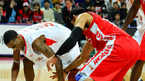 [OSEN=울산, 민경훈 기자] KB 국민카드 2012-2013 프로농구 울산 모비스와 SK 나이츠의 경기가 7일 오후 울산 동천 체육관에서 열렸다. 3쿼터 모비스 문태영이 SK 심스와 몸싸움을 하고 있다. 유재학 감독이 이끄는 울산 모비스는 지난