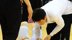[OSEN=창원, 민경훈 기자] KB 국민카드 2012-2013 프로농구 창원 LG와 인천 전자랜드 경기가 8일 저녁 경상남도 창원시 창원 실내체육관에서 열렸다. 1쿼터 전자랜드 정영삼이 부상으로 코트 위에 누워있다. 김진 감독이 이끄는 창원
